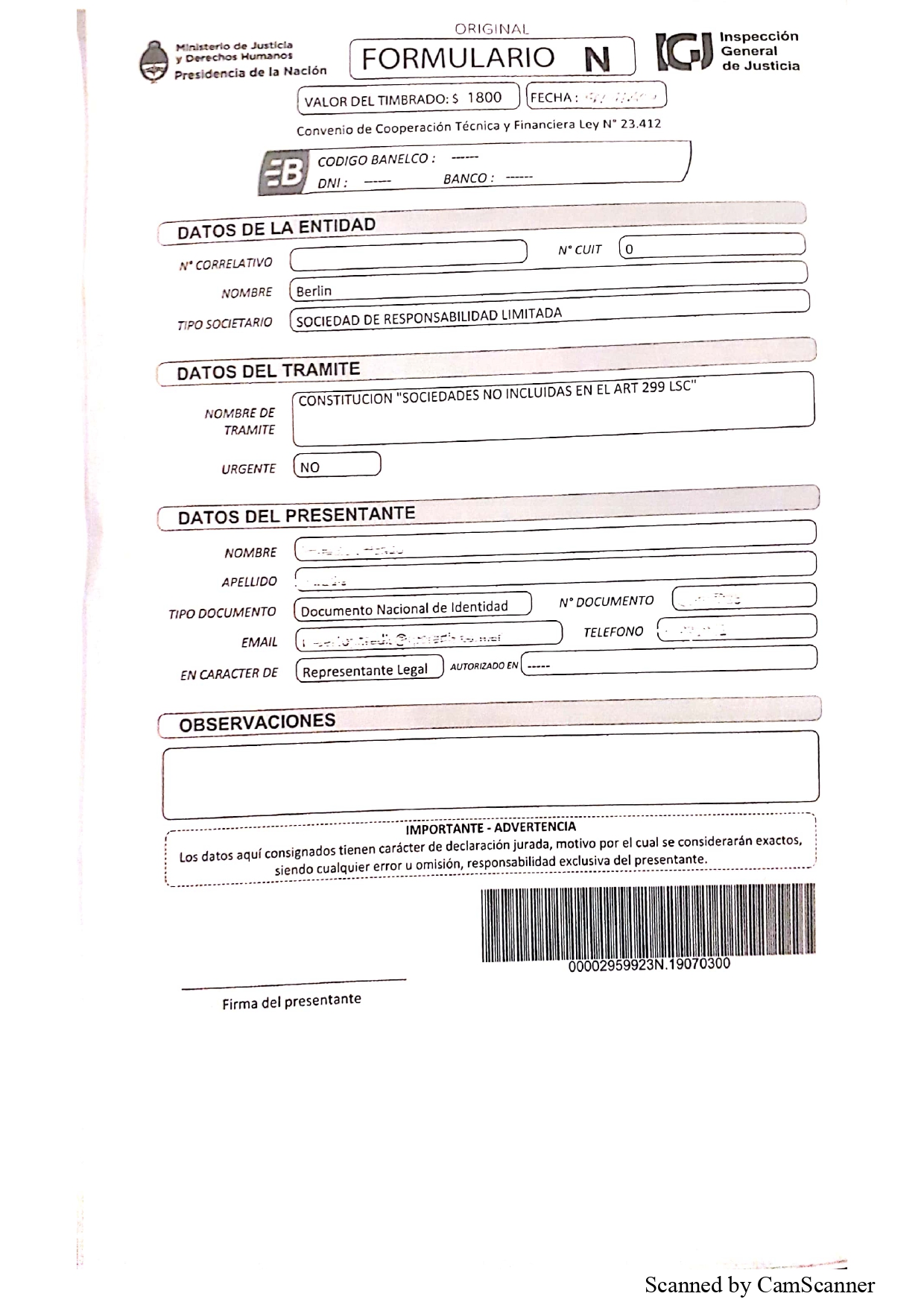 I.- Número de socios: dos (2) Persona físicas: XXXXXXXXXXXXXGuillermo y XXXXXXXXXXXXXXXXy se controló la capacidad de los socios.