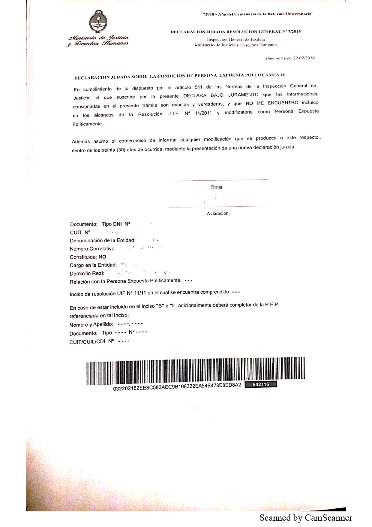 7) Formulario de Persona no expuesta Políticamente. (Declaración Jurada).